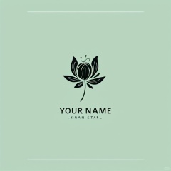 Stylized flower logo, black flower with white outline, "your name" text below in black with white outline, light green background, minimalist style <lora:aki-INs网红图标-000008:0.8>,