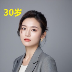 leogirl,A 30-year-old woman,portrait photo,facial focus,photo taken,fashionable and simple,Chinese ethnicity,soft gray background,natural lighting,high-resolution clarity,contemporary portrait,gentle,fashionable and avant-garde,simple accessories,details with strong contrast between skin color and neutral background,looking at the audience,