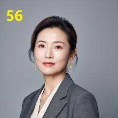 leogirl,A 56-year-old woman,portrait photo,facial focus,photo taken,fashionable and simple,Chinese ethnicity,soft gray background,natural lighting,high-resolution clarity,contemporary portrait,gentle,fashionable and avant-garde,simple accessories,details with strong contrast between skin color and neutral background,looking at the audience,