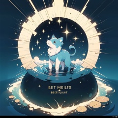 (best quality:1.4), (album cover:1), English text, dot effect, no humans, star\(sky\), furry, water element, water element\(creature\),