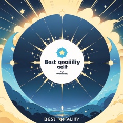 (best quality:1.4), (album cover:1), English text, dot effect, no humans, star\(sky\), dawn element, water element\(creature\),