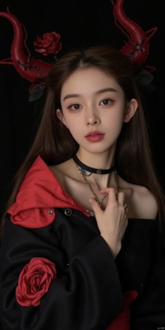 yilin,(Good structure), DSLR Quality, ,(Front focus),(in the darkness nigth:1.6),Surrealist portraits of women by DavidHockneyandAlphonseMucha,Fantasyart,photographrealistic,动态照明,artstation,red gown,sam yang, 1girll,,,黑Theeye,brownhair,耳Nipple Ring, jewely,black dressed evening dress, cparted lips, looking at viewert, choker necklace, cropped shoulders, Lips half open, sportrait, daysies,depthoffields,独奏, ((tmasterpiece))Volumetriclighting,Very detailed faces,4 k,Award-Awarded, , 1girl, in the dark, deep shadow, low key, ,(official clothes:1.4),