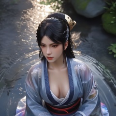 <lora:839-DA-XL-少年白马醉春风-温珞玉:0.6>, (,1girl, ,best quality, ),,  ,(Highest picture quality), (Master's work), , (ultra-detailed), the portrait is centered, 1girl, raiden shogun, nsfw, (wet clothes), blush, bare hips, (sheer shirt), (from above:1.7), (translucent dress), water drop, (rain), (outdoors), stained, wet hair, wet dress, wet, scenery, (long hair), nature background, close up, ((on back)), water,masterpiece, best quality, ultra high res, highly detailed, (abstract expressionism art:1.4), [girl | fire ghost:10], love,, dark rainbow theme, colorful, visually stunning, beautiful, gorgeous, emotional, intricate, perferct shading, rainbow hair,(sit),  ,(cleavage),,