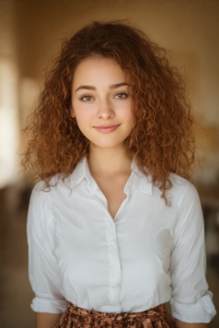 masterpiece, high quality realistic, realistic aesthetic photo ,(HDR:1.2), pore and detailed, intricate detailed, graceful and beautiful textures, RAW photo, 16K, sharp forcus, warm tone, vibrant colors, (head to waist portrait), in the classroom, bright atmosphere, girl fused on Imperial-Topaz, cute face, little-smile, detailed eyes, light-brown medium hair, curled bangs, juicy lips, fair oily skin, collared shirt,skirt,