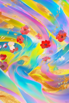 digital art illustration,女孩半身像,花朵环绕,分型艺术,抽象艺术,微距摄影,五颜六色的流沙,金粉闪闪,充满流体质感,整体五彩斑斓,梦幻色调,柔和色彩,