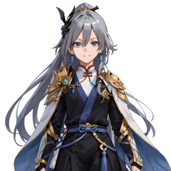 (white background:1.2),looking at viewer,(SOLO:1.4),outline,simple background,upper body, cowboy shot,looking at viewer,(((arms at side))),  fu hua,long hair, bangs, blue eyes, hair between eyes, ponytail, hair ornament, grey hair, blue hair, smile, earrings,long sleeves,armor,earrings,jewelry,hakama skirt,shoulder armor,chinese clothes,ponytail,long hair,<lora:shubianshang-pony:0.8>