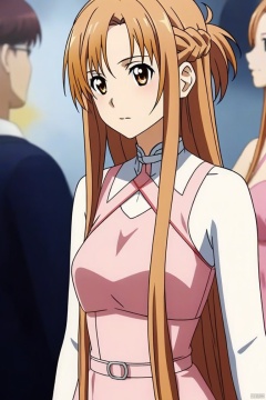 A half-body perspective of a 1girl with yellow long hair, dressed in Asuna's pink dress, captured in a dynamic pose. The scene features light and shadow texture, creating a three-dimensional and layered effect with rich details. Rendered in 8K resolution, the image blends 2.5D CG with semi-realistic photos, showcasing a high level of realism and depth.