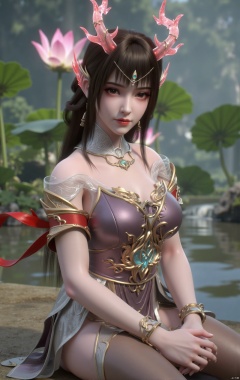 masterpiece,1girl,black hair,(Sitting by the lotus pond in the garden:1.3),(short dress:1.39),black eyes,beautiful face,short sleeves,holding flower,looking at viewer,(huge breasts:2.79),(full breasts:1.99),Xzhaoliner,Xyaoxi,Xsulingyun,XyunluoX,Xhenrendadi,Xlannuo,Xlongnv,Xruoshui,XyunluoH,Xyuzimo