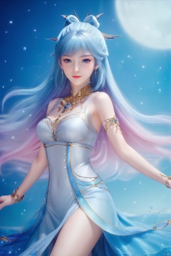 masterpiece, best quality, masterpiece,best quality,official art,extremely detailed CG unity 8k wallpaper,1girl,solo,hair ornament,long hair,looking at viewer,jewelry,multicolored hair,blue eyes,dress,
