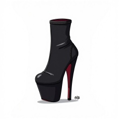 DIY sneaker, This image is a digital illustration featuring a high heel combination with boot. The high heel itself is primarily black. The background is a white
