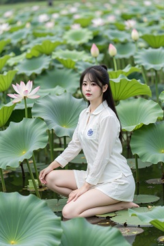 masterpiece,(best quality),official art, (1girl), (solo), ((looking_at_viewer)),(huge breasts:2.39),(full breasts:1.99),Xzhaoliner,(Lotus pond, lotus:1.52)