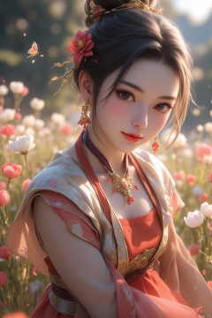pencilpunk,((caustics:1.3)),(colorful:1.15),(gorgeous light and shadow:1.1),light and shadow,close up,A Chinese beauty dressed in a manzhu sawa flower hanfu,pitiful,stylish and artistic,Fever-Dream,Dark Atmosphere,Zen Atmosphere,16K,hyper quality,((ink)),(water color),bloom effect,detailed beautiful grassland with petal,flower,butterfly,necklace,smile,petal,(((surrounded by heavy floating petal flow))),((moon)),starry sky,(lighting particle),fog,snow,(bloom),