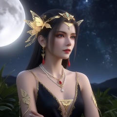 <lora:840-DA-XL-元龙-林秀:0.8>, (,1girl, ,best quality, ),,masterpiece(,1girl,night, starry sky, milky way,outdoors, full moon,  night sky, darkness,  world of darkness, , ) ,ultra realistic 8k cg,   clean, masterpiece,     (( , )),, , , prestige, luxury, jewelry, diamond, gold, pearl, gem, sapphire, ruby, emerald, intricate detail, delicate pattern, charming, alluring, seductive, erotic, enchanting, hair ornament, necklace, earrings, bracelet, armlet,halo((, )), (), butterfly,