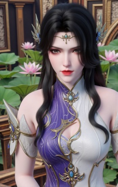 masterpiece,1girl,black hair,(Standing by the lotus pond in the garden:1.3),(hanfu dress:1.3),black eyes,beautiful face,short sleeves,holding flower,looking at viewer,(huge breasts:2.59),(full breasts:1.99),Xxianyi,Xxiyouqin,Xqinghe,Xyanqingcheng,Xhongdie,Xcaoying,Xjiziyue