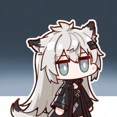 chibi,<lora:nineface-chibi-A31-5:1>,1girl,lappland \(arknights\),arknights,animal ears,long hair,wolf ears,hair ornament,scar across eye,hairclip,bangs,scar on face,grey eyes,white hair,hair between eyes,grey hair,breasts,very long hair