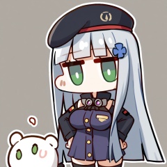 chibi,<lora:nineface-chibi-A31-5:1>,1girl,hk416 \(girls' frontline\),girls' frontline,bangs,green eyes,long hair,hair ornament,breasts,facial mark,grey hair,blunt bangs,hat,large breasts,medium breasts,very long hair,