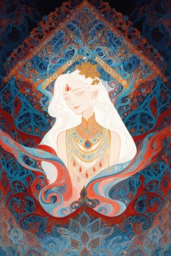 score_9,score_8_up,score_7_up,score_6_up,Digital art,Official art,8k wallpaper,super detailed,beautiful and beautiful,masterpiece,best quality,(fractal art:1.3),lines,illustration,very detailed,bright colors,romanticism,dark background,A girl, beautiful portrait, long hair, hair accessories composed of jewels and carnelian hanging on both sides of the hair, small flowers of various colors dotted in the middle, deep-set eyes, forehead jewels, hair tubes hanging on both sides, absolutely long hair, hair tubes, slight freckles, sunlight on the face, an infectious smile, elaborate attire with traditional patterns, exquisite digital art illustration, fractal art, dynamic composition.A beautiful portrait of a young girl with long, lustrous hair. Her hair is adorned with jewelry and agate, with decorative elements hanging on either side, interspersed with small flowers of various colors in the middle, giving a richly ornamental feel. Her deep, expressive eyes are captivating, and her forehead is embellished with jewels. Hair tubes cascade down both sides, and her long locks are emphasized. Subtle freckles dot her skin, adding character to her sun-kissed face. Her infectious smile is full of vitality, and she is dressed in elaborate attire that features traditional patterns. The artwork is a fine digital illustration with fractal art elements, composed dynamically to draw the viewer in.,<lora:models/2444/6beeadcc.safetensors:0.8:0.8>