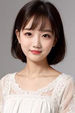 <lora:AgainAgeSliderLora:-0.5>, girl, smirk, closed mouth, portrait, realistic, dress, simple background,