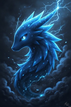yishou,(a mythical beast,dark color scheme,blue hues,stormy clouds,lightning strikes,increased tension,sonic waves,Chinese style,best quality,4k,highres,masterpiece:1.2),ultra-detailed,realistic,sharp focus,extreme detail description,vivid colors,atmospheric lighting,ominous sky,electric atmosphere,strong presence,ancient mystique,ethereal glow,legendary creature,mythical aura,stormy weather,chaotic energy,high contrast,deep shadows,blue lightning,rumbling thunder,cloudy backdrop,clear definition,high clarity,dramatic scene,impactful imagery,dynamic composition,traditional Chinese elements,rich textures,beautifully rendered,artistic vision,impressive visuals,visually striking