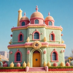 villa,Macaron color,creative, whimsical, textured, handmade, sunny day, outdoor scene, close-up, high-resolution, fantasy, attention to detail, craftsmanship,furry-world