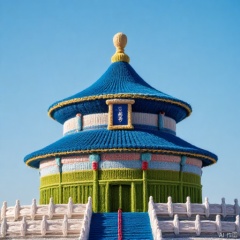 Temple of Heaven in Beijing,Macaron color,vibrant colors,creative, whimsical, textured, handmade, sunny day, outdoor scene, close-up, high-resolution, fantasy, attention to detail, craftsmanship,furry-world