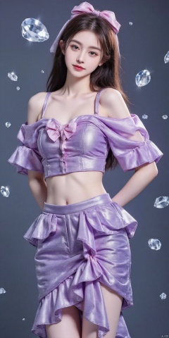 luoyu,(((crystals texture Hair))),{{{{{extremely detailed CG}}}}},{{8k_wallpaper}},{{{{Crystalline purple gemstone gloves}}}},((beautiful detailed Glass hair)),((Glass shaped texture hand)),((Crystallize texture body)),Gem body,Hands as clear as jewels,Crystallization of clothes,((crystals texture skin)),sparkle, lens flare, light leaks, Broken glass,{{{{Detailed Glass shaped clothes}}}}, ((masterpiece)), (((best quality))), ((ultra-detailed)), ((illustration)), ((disheveled hair)), ((frills)), (1 girl), (solo), dynamic angle, big top sleeves, floating, beautiful detailed gemstone sky, gemstone sea, beautiful detailed eyes, overexposure, side blunt bangs, hairs between eyes, ribbons, bowties, buttons, bare shoulders, (((small breast))), pleated skirt, crystals texture flowers, ((Detailed crystallized clothing)),(gemstone of body),solo focus