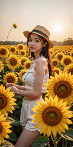 luoyu,((Girl in straw hat looking back in a field of sunflowers)), (backlight), (best illumination, best shadow, an extremely delicate and beautiful), Girl on the center axis of the picture, small breasts, ((Sunflowers with the ultimate in detail)), beautiful detailed sky, Perfect body, (beautiful detailed face), extremely delicate and beautiful girls, Sunflower fields at sunset, sunset, black hair, beautiful detailed cloud, (((extremely detailed CG unity 8k wallpaper, masterpiece, best quality, ultra-detailed))), dynamic angle, floating, finely detail, (bloom), (shine), glinting stars, feather,nature,(sunlight), fairyland, (((The character is in the center of the frame)))