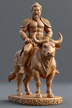mudiao,(Chinese immortals wooden sculpture,riding on a ox,gray background,full body,standalone display,geometric patterns,front view,3D art,C4D,3D rendering,light and shadow,depth of field,best quality,8K,super details,ultra-detailed,sharp focus,physically-based rendering,extreme detail description,professional,vivid colors,bokeh,detailed textures,realistic,photo-realistic:1.37),