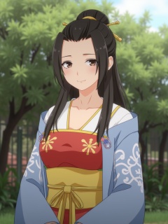 2D style,A girl is wearing Chinese clothes outdoors,black hari,black eyes,upper body,smile