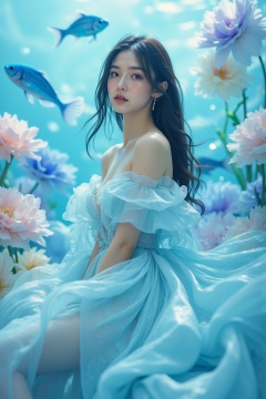 UZZO_水中仙境,水与光的奇幻鱼群与她的灵动姿态 - v1