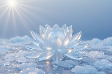pool,lotus,simple background,ice-scenery,ice sculpture,ice style,made of ice,transparent,creative, whimsical, textured, handmade, sunny day, outdoor scene, close-up, high-resolution, fantasy, attention to detail, craftsmanship