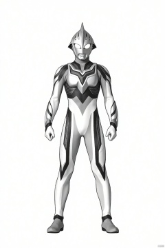 (grey background:1.2),looking at viewer,(SOLO:1.4),outline,simple background,full body,looking at viewer,(((arms at side))),traditional media,monochrome,sketch,ultraman,white bodysuit,white gloves,legwear,gloves,boots,cover,mask,plugsuit,armor,bodysuit,black pattern on body,grey pattern on body,white tight-fitting,white footwear,helmet,leather suit,latex,tokusatsu,no humans,science fiction,silver head,hard mask,no smile,no eyes,no nose,solo,silver rubber bodysuit with grey line and black line