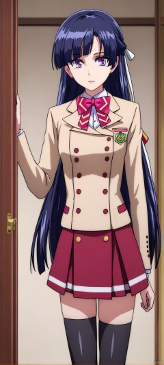 (high definition, Best quality, masterpiece, 4K, exquisite skin), LMyexiao, solo, portrait, black thighhighs, room, learning forward, Focus upper body