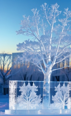 miluo_bing, no humans, tree, scenery, outdoors, blurry, bare tree, sky, ice sculpture <lora:万物可冰雕sd1.5-v1.4:0.7>