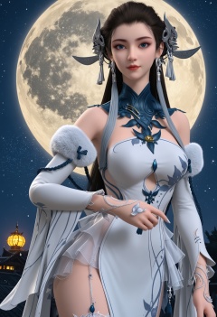 (score_9:1.1),1girl,solo,(upper_body:1.2),looking at viewer,(moon:1.1),(night:1.1),sky,night sky,(full moon:1.1),(huge planetary background:1.1),moonlight,<lora:YQponybaiyijunV2:0.8>,q1528437228,solo,1girl,long_hair,hair_ornament,dress,jewelry,bare_shoulders,brown_hair,earrings,realistic,white_dress,detached_sleeves,black_hair,blue_eyes,tassel,chinese_clothes,fur_trim,see-through,boots,high_heels,tassel_earrings,necklace,white_footwear,black_footwear,thighhighs,fingernails,fingers,