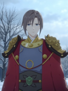 2D style,A boy in armor,outdoors,on a snowy day,black eyes,black hair,