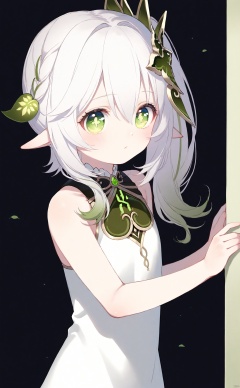 masterpiece,best quality,illustration,[Artist miwano rag],[Artist toosaka asagi],[Artist wlop],[Artist chen bin], 1girl, solo, long hair,loli,loli,loli, (little_girl:1.2),petite:1.1,half body, elf girl,pointy_ears, small breast, green eyes, symbol-shaped pupils, cross-shaped pupils, white hair, green hair, bangs, hair ornament, gradient hair, side tonytail, nahida \(genshin impact\) , chen_bin,sugerjio