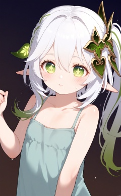 masterpiece,best quality,illustration,[Artist miwano rag],[Artist toosaka asagi],[Artist wlop],[Artist chen bin], 1girl, solo, long hair,loli,loli,loli, (little_girl:1.2),petite:1.1,half body, elf girl,pointy_ears, small breast, green eyes, symbol-shaped pupils, cross-shaped pupils, white hair, green hair, bangs, hair ornament, gradient hair, side tonytail, nahida \(genshin impact\) , chen_bin,sugerjio