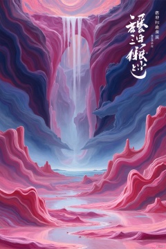 An eye-level shot of a vibrant pink landscape, with a waterfall in the center of the frame. The waterfall is made up of a series of wavy pink formations, creating a striking contrast. The background is a mix of purple, pink, and blue, adding a pop of color to the scene. The text "The 3rd Solo Exhibition" is prominently displayed in the top right corner of the image, with the date "2018. 2.21 WED - 3.25 SUN" in the bottom right corner.