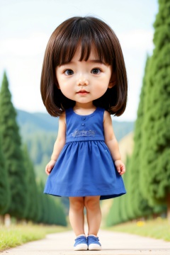 <lora:AgainF1ChibiLora:1>,girl,chibi,full body,blue dress,outdoors,