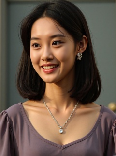 Slow-motion shot on Kodak 5207 65mm film using Arri Alexa 65 IMAX, capturing the essence of nostalgia. The camera pans across a solo figure with striking black hair, wearing a flowing dress that showcases her curves. Her piercing brown eyes and full lips seem to radiate warmth as she gazes off-camera. A delicate necklace adorns her neck, drawing attention to her elegant upper body. The dusty, grainy texture of the film adds an air of authenticity, while the low-key lighting creates long shadows that emphasize her features. In stunning 16K resolution, every detail - from the jewelry to the subtle curve of her smile - is rendered in breathtaking full color grading.