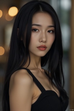 (black stockings,beautiful woman),(best quality,4k,8k,highres,masterpiece:1.2),ultra-detailed,(realistic,photorealistic,photo-realistic:1.37),long black hair,beautiful detailed eyes,beautiful detailed lips,extremely detailed face,long eyelashes,slim figure,elegant dress,confident pose,soft lighting,indoor setting,modern interior,shadows,contrasting colors,subtle makeup,smooth skin,high fashion,alluring,attractive,professional photography,sharp focus,physically-based rendering,vivid colors,bokeh