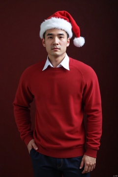 jzns,shx,1man,asian,solo,handsome,Christmas clothes,Christmas hat,masterpiece, realistic, best quality, highly detailed,shx