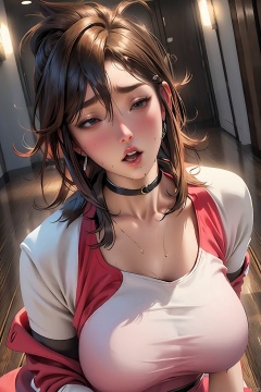 1girl solo breasts blush open mouth large breasts collarbone closed eyes  sweat medium hair mature female