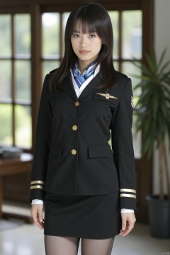 (1girl:1.3), (best quality, masterpiece, ultra high resolution),(photorealistic:1.3), (realistic:1.3), depth of field,(full body:1.4), (day:1.2), (cinematic lighting:1.2), kongjie, uniform, 全身照