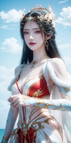 best quality, masterpiece, realistic,cowboy short,(Good structure), DSLR Quality,Depth of field,kind smile,looking_at_viewer,Dynamic pose, , Blue sky and white clouds on the beach,Masterpiece, (ultra wide angle lens: 1.2), Unity8k wallpaper, best quality, (detail shadow: 1.1), a beautiful girl, on a sea of light blue silk, translucent silk, floating light blue silk, surrealist style, minimalism, highly detailed texture, light blue, white clean background, CG rendering, light passing through clouds, 8k resolution, (motion photo: 1.2), (Fidelity: 1.4), original photos, movie lighting, 1girl,, , ,kind smile, , weddingdress, hongdie
