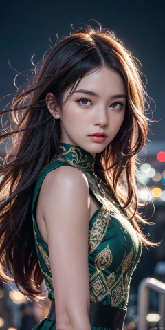 (masterpiece, best quality, ultra-detailed, highres, best illustration),1girl, solo,(male focus:0.8), transgender male, red hair, green hair, heterochromia, purple eyes, two tone hair, ,side lighting, lustrous skin,(shine), (shiny skin, cetlic elements, norse heritage), ray tracing, shirt, wind swept hair, detailed hair, detailed face, ,depth_of_field,very detailed background,extreme light and shadow,(detailed eyes) , perfect anatomy, (zentangle, mandala, tangle, entangle), dynamic angle, wide shot, upper body, city scape, extreme light and shadow, night sky