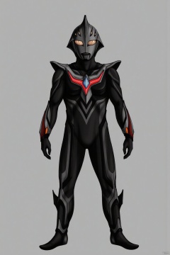 (grey background:1.2),(SOLO:1.4),outline,simple background,(((,standing,looking at viewer,arms at side))),ultraman,black bodysuit,black gloves,legwear,gloves,boots,cover,mask,plugsuit,armor,bodysuit,black tight-fitting,black footwear,helmet,leather suit,latex,tokusatsu,no humans,science fiction,hard mask,no smile,no eyes,no nose,solo,black rubber bodysuit ,(((black head,red eyes)))