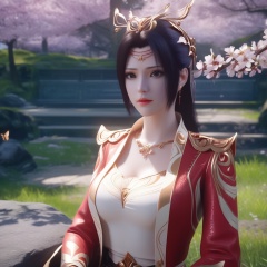 <lora:842-DA-XL-斗破苍穹-云韵-婚服:0.8>, (,1girl, ,best quality, ),,  ultra realistic 8k cg,ultra detailed 8k cg,masterpiece,upper body,  (( , )),, ,science fiction,mole, ,    ,outdoors, sun,sunlight, cherry blossoms,      (cleavage),,  (), butterfly,(sit),