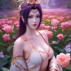 <lora:842-DA-XL-斗破苍穹-云韵-婚服:0.8>, (,1girl, ,best quality, ),,  ,ultra detailed 8k cg,ultra realistic 8k cg,1girl, solo,(bare shoulders:0.85),(masterpiece, best quality),((oil painting style)),sexy young lady,(beautiful face and eyes),(upper body:1.5),(whole body:1.05),(single person:1.2),surrounded by flowers, (lily), roses, floret, vegetation, white, purple, purplish pink,Impressionism,colorful,(Breast size:1.3),(cleavage),, butterfly,(sit),